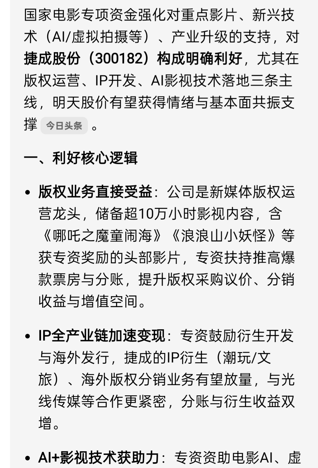 绝对利好明天捷成股份,明天追高都不行了!!终于有点变量了,明天,一个点开,冲到14个点左右收市,涨停机会不大
