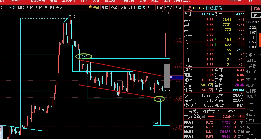 $捷成股份(SZ300182)$ 拉上6.4就确认了5.78是这波低点,这个高开给你100分