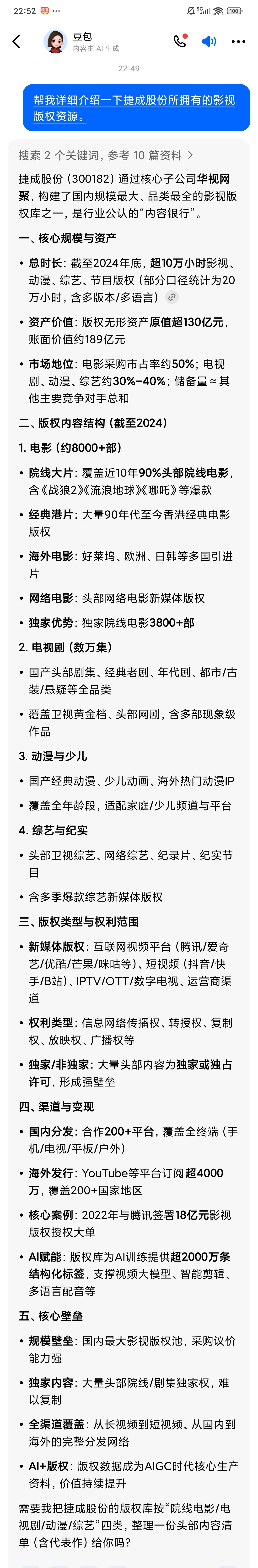 $捷成股份(SZ300182)$ 国内最大的视频版权公司,版权账面价值就有190亿,之前一直被低估,现在价值重估