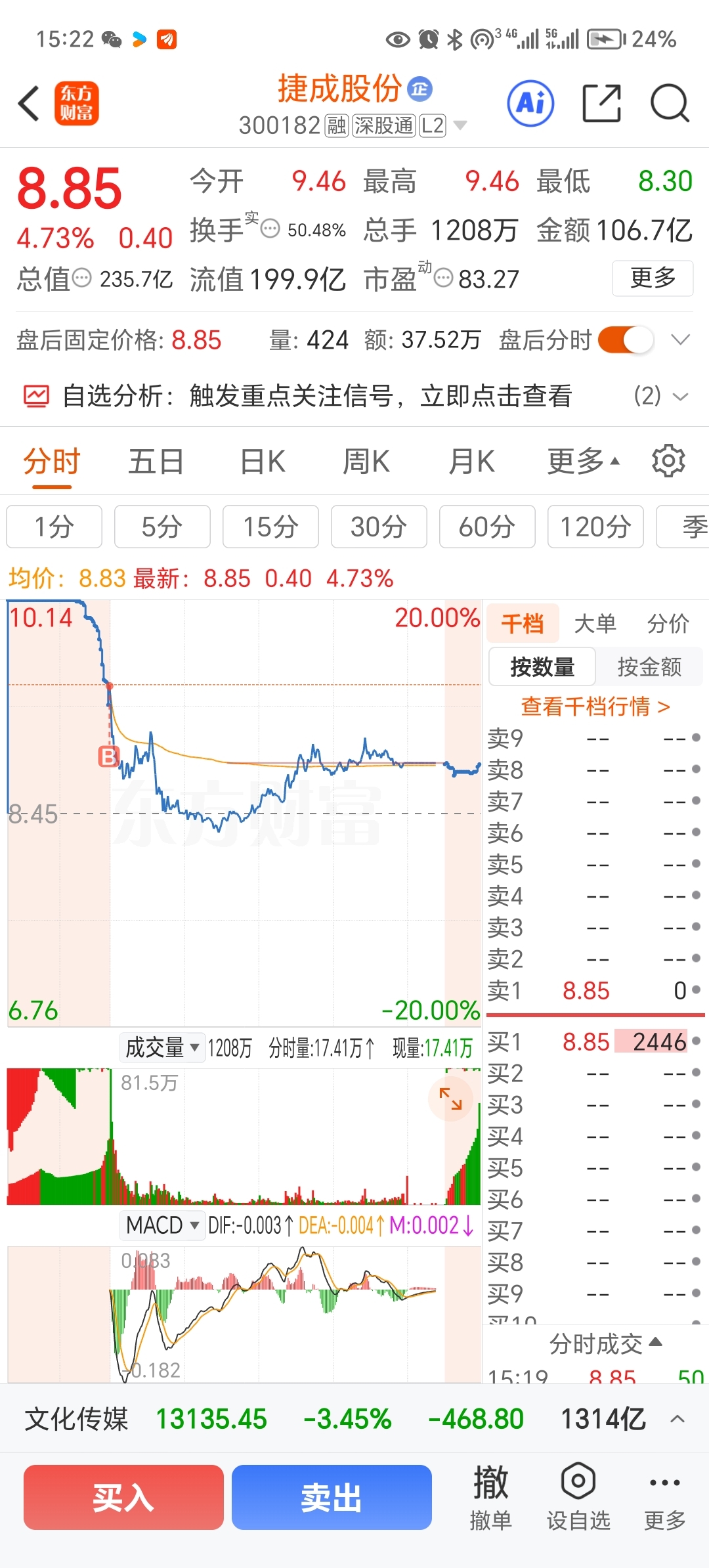 $捷成股份(SZ300182)$ 一进来就挨打,明天能不能放我出去