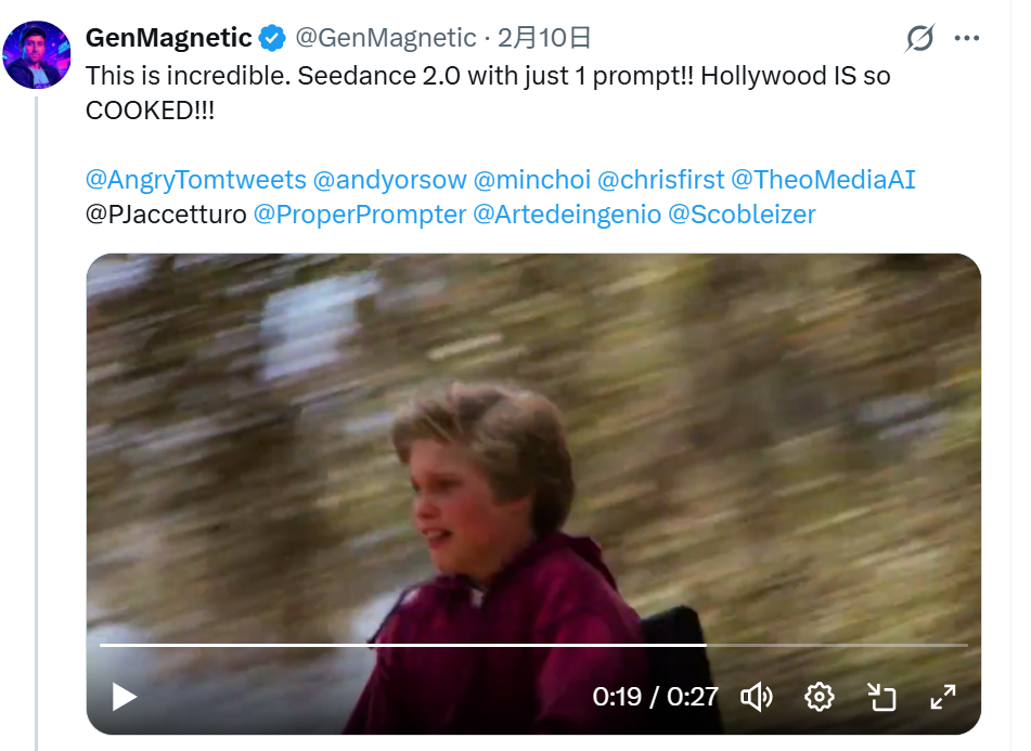 多位美国导演在社交平台X(原推特)分享了自己使用Seedance 2.0制作短片的感受,并发出了“好莱坞要完蛋了”的感叹。