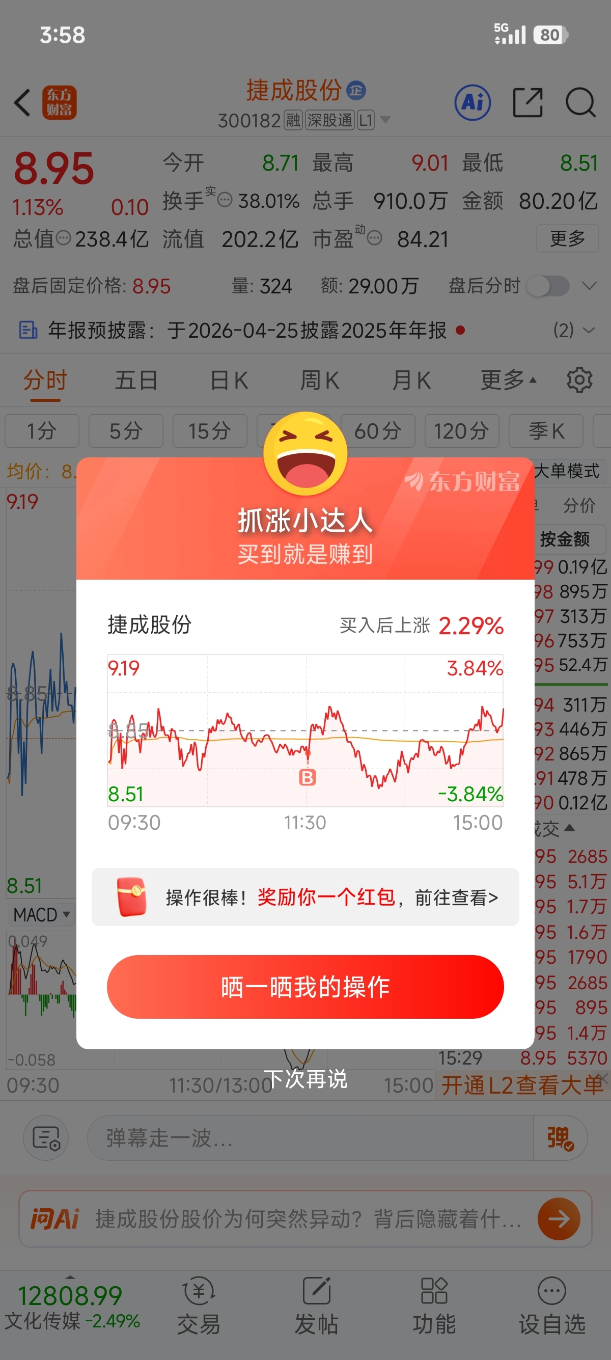 $捷成股份(SZ300182)$ 明天新高就跑路