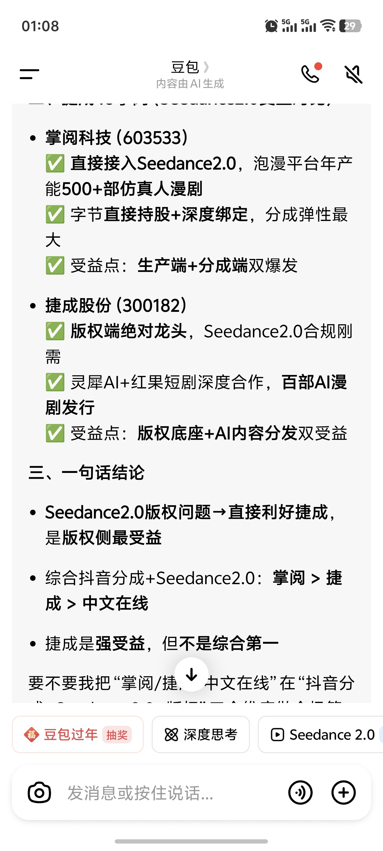 豆包说的自己公司的信息不会错,春节后光线直接核按钮了,捷成启航翻倍