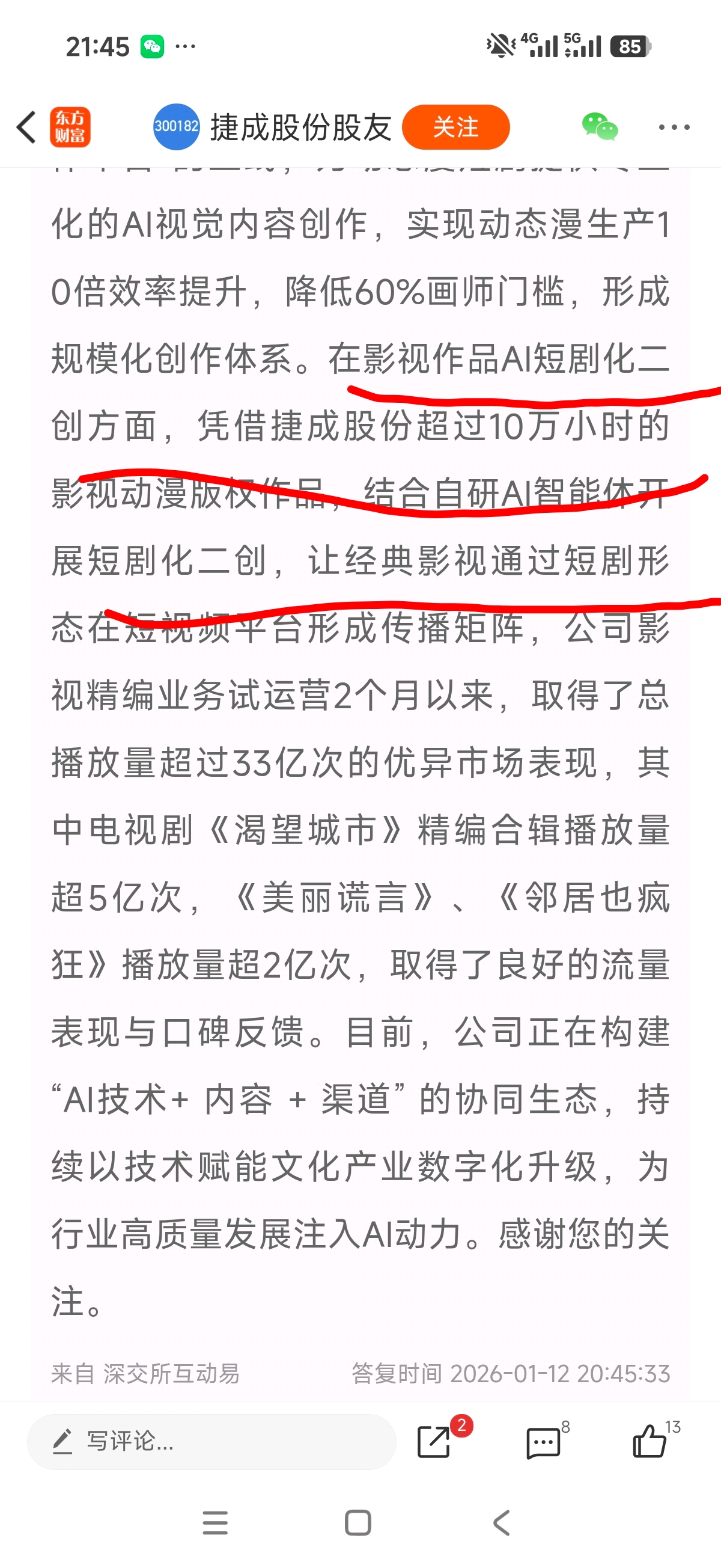 $捷成股份(SZ300182)$ 有版权又支持影视作品二创,核心是版权。其次中文是在小说文字类版权和捷成都是版权类一荣俱荣一损俱损,还看不懂的去小学学学语文阅读理解