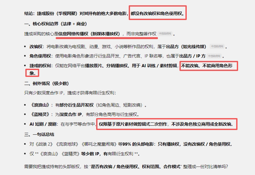 捷成只是一个有播放权的分销商,不是IP版权拥有者,啥都不是,一点ai的光也沾不上