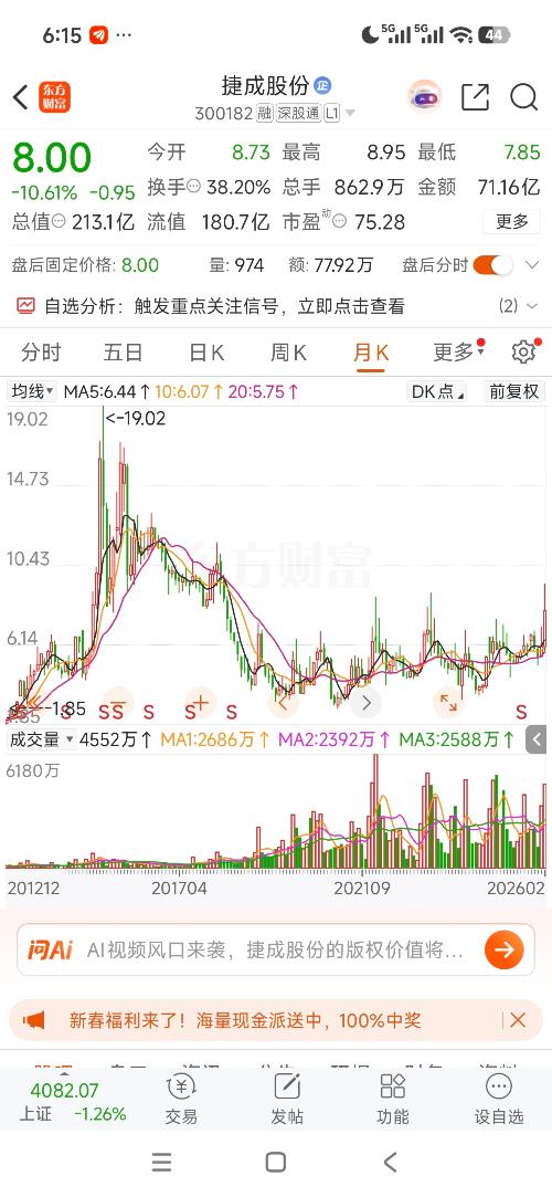 $捷成股份(SZ300182)$ 买这种股的韭菜,必然亏多赚少,这股就是投机分子,但风险远大于收益,小仓位试错可以玩玩,别看很热闹,实则处处是杀机,买这种股敢上仓位的,都是犯了孤注一掷大忌的赌徒,迟早腰斩再腰斩