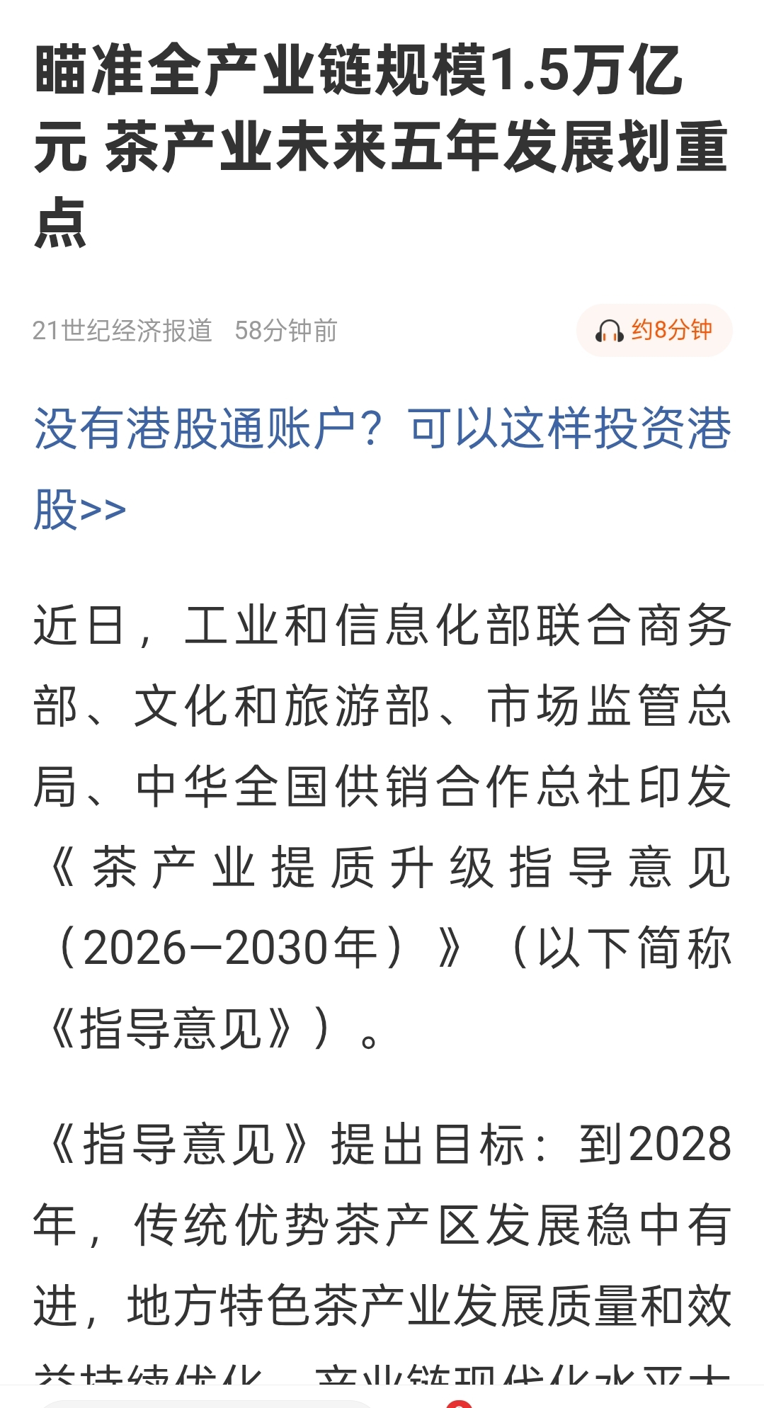 $捷成股份(SZ300182)$ 十五五规划把扩内需,提振消费列为第一位,优先项目,其中就提到茶产业提为扩内需,提振消费的生力军,接着村里就出台茶产业提质升级指导意见,提出万亿赛道,而大商股份旗下大商茶园专耕茶叶,已有多年,可谓完美契合村里政策,希望有厉害的游资能够看上啊。开门来个大红!