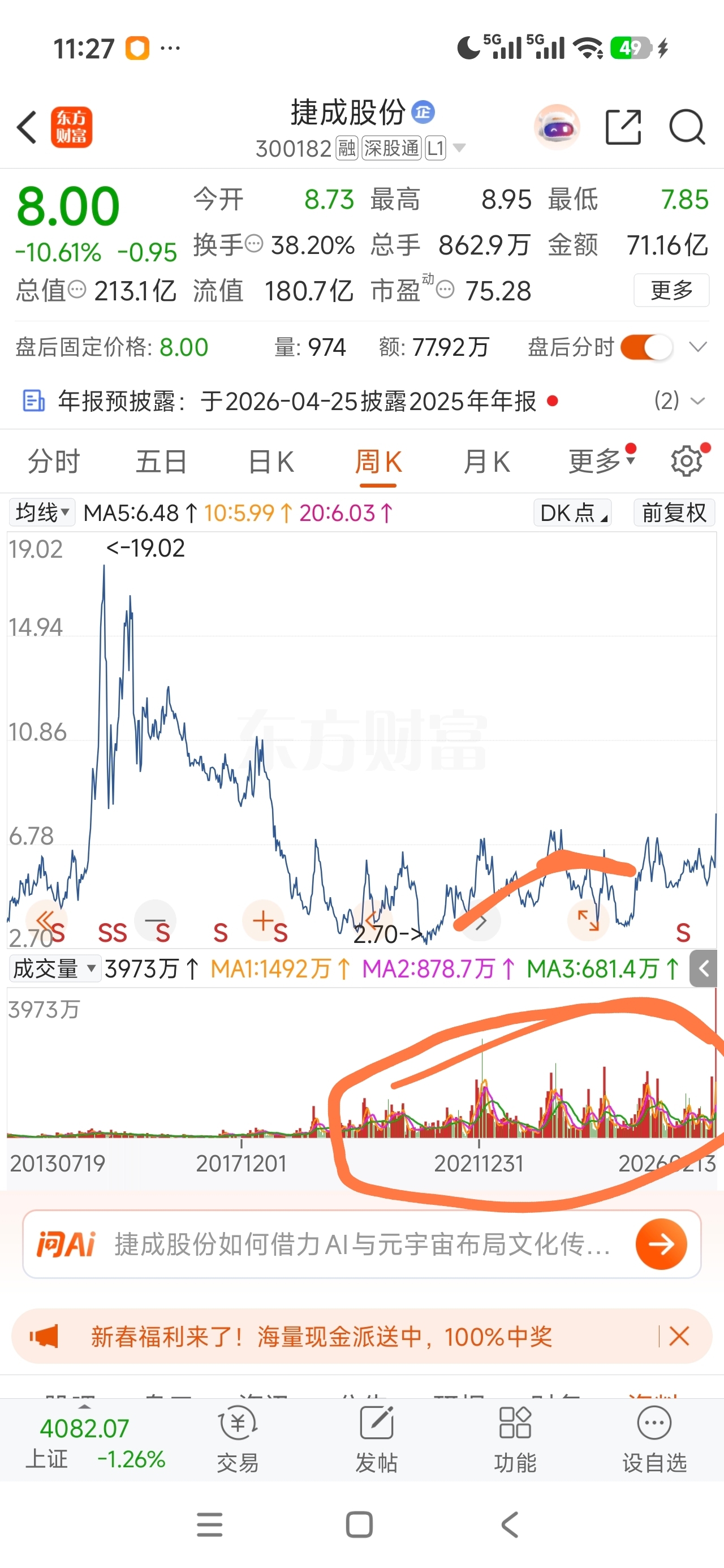 $捷成股份(SZ300182)$  春节后预测,开盘三十五个跌停,应该不是问题