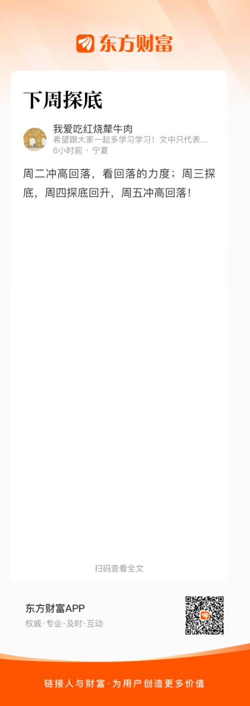 周二冲高回落,看回落的力度;周三探底,周四探底回升,周五冲高回落!