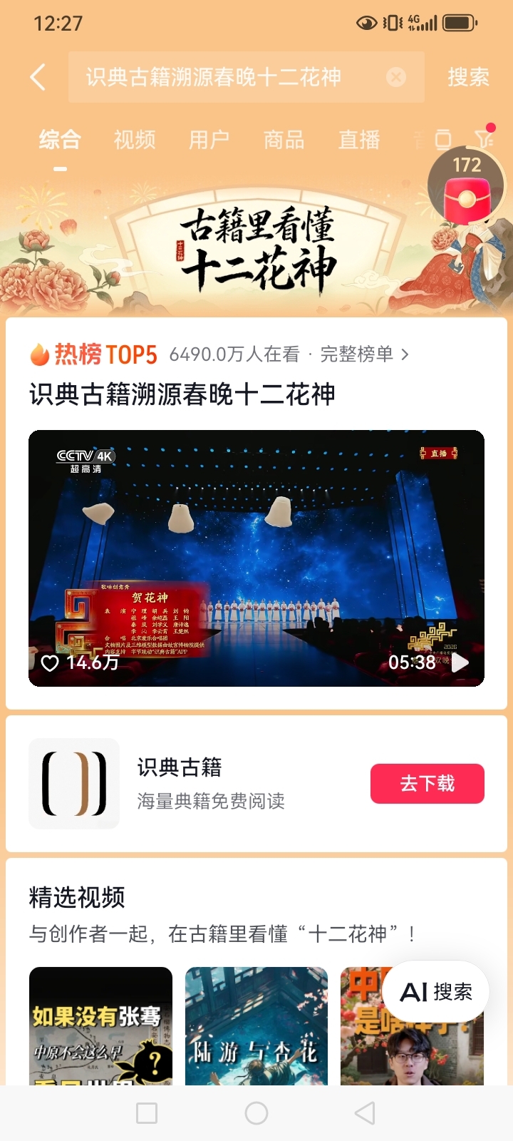 看看抖音热度前5,12花神,,现在热度机器人都热度都没了,,12华神才是真的春晚