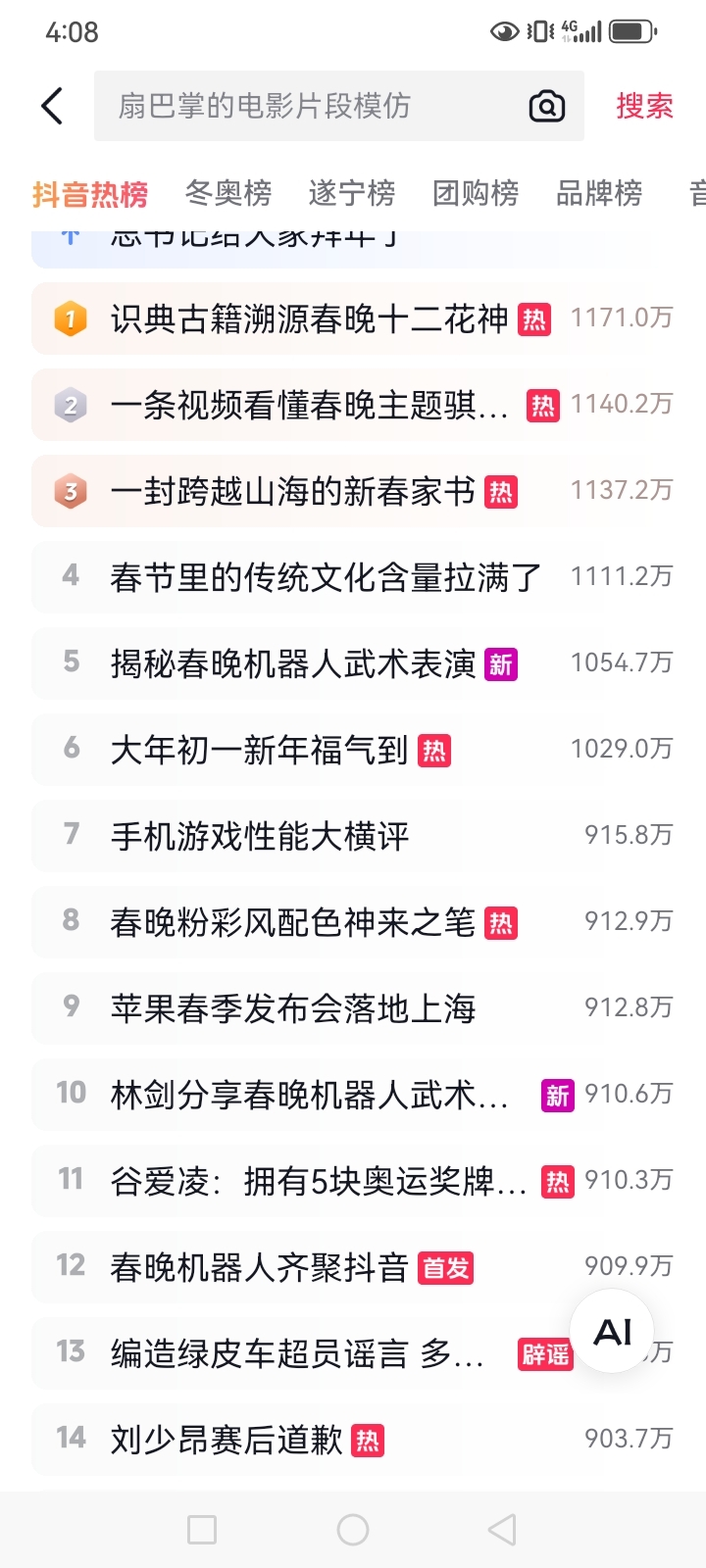 还是12花神热度最高第一,,,机器人只是昙花一现。本来12花神就是春晚最好看最有
