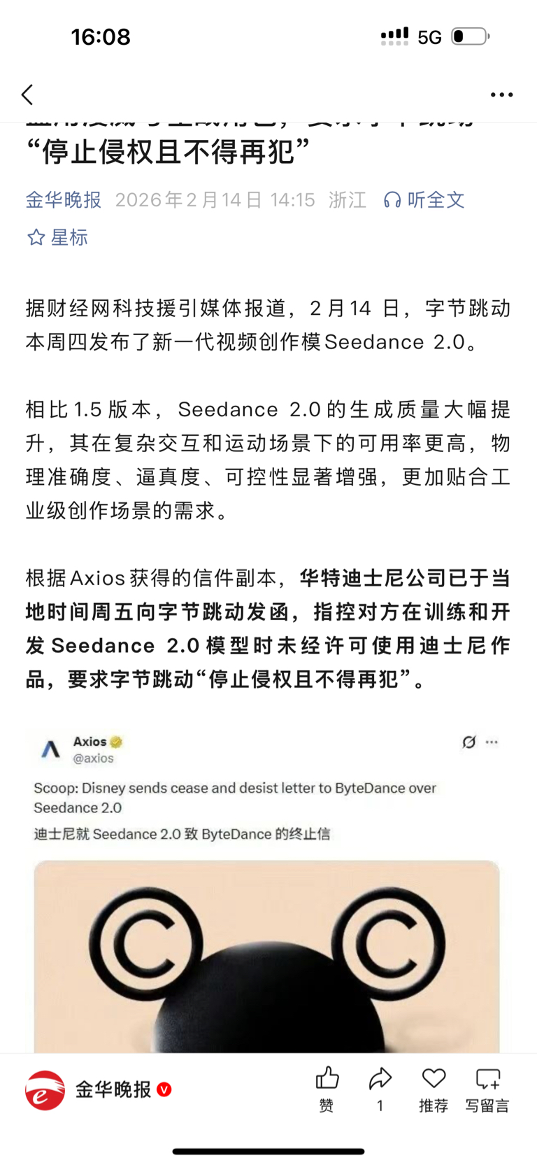 $捷成股份(SZ300182)$ 从迪士尼好莱坞再到春晚,版权的重要性日益凸显。seedance只是开始,腾讯的视频ai呢,阿里的视频ai呢,版权都是绕不开的,都会火热购买捷成版权,抢占先机,先得版权者得天下!sd版权概念第一股捷成!中国版权之王捷成!$中文在线(SZ300364)$ $光线传媒(SZ300251)$