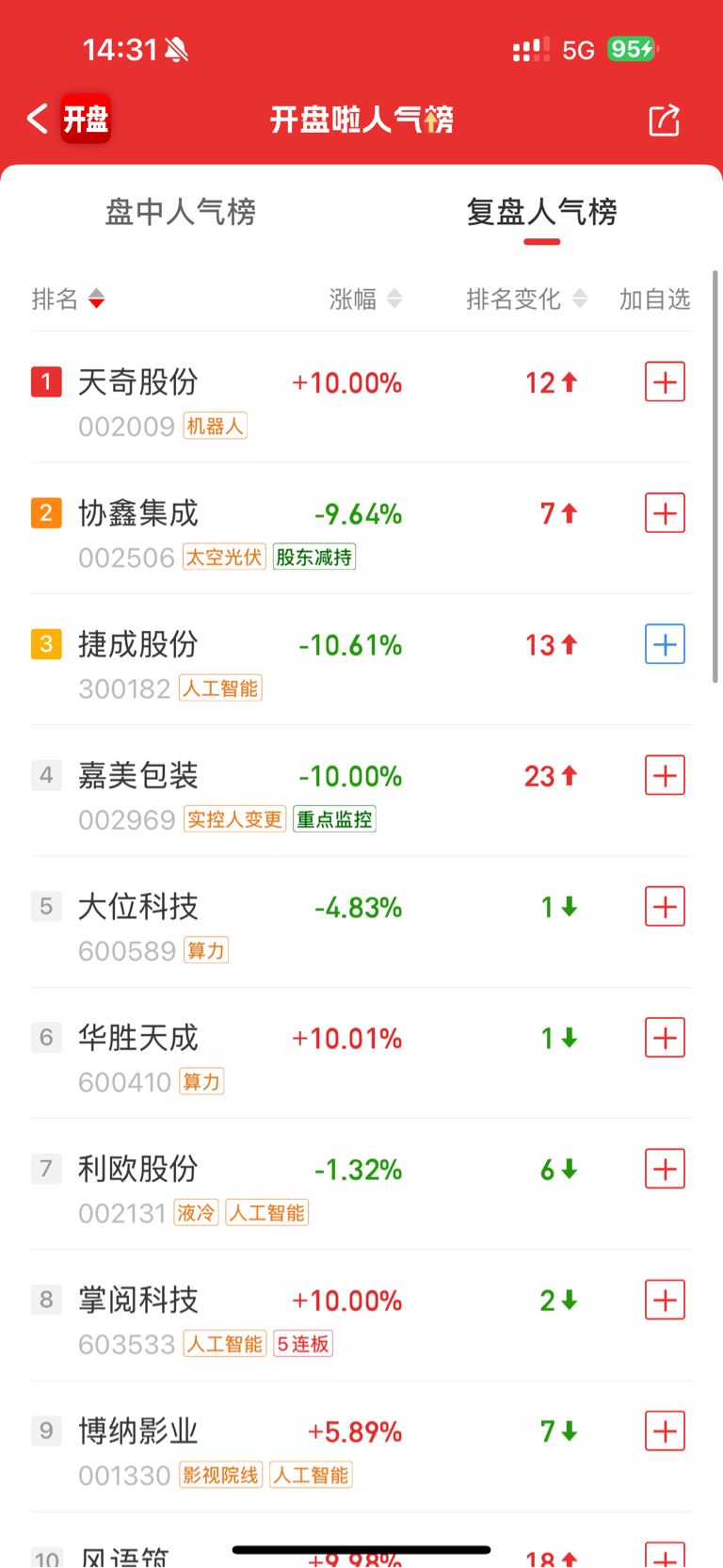 开盘啦人气排名也飙升到第三了