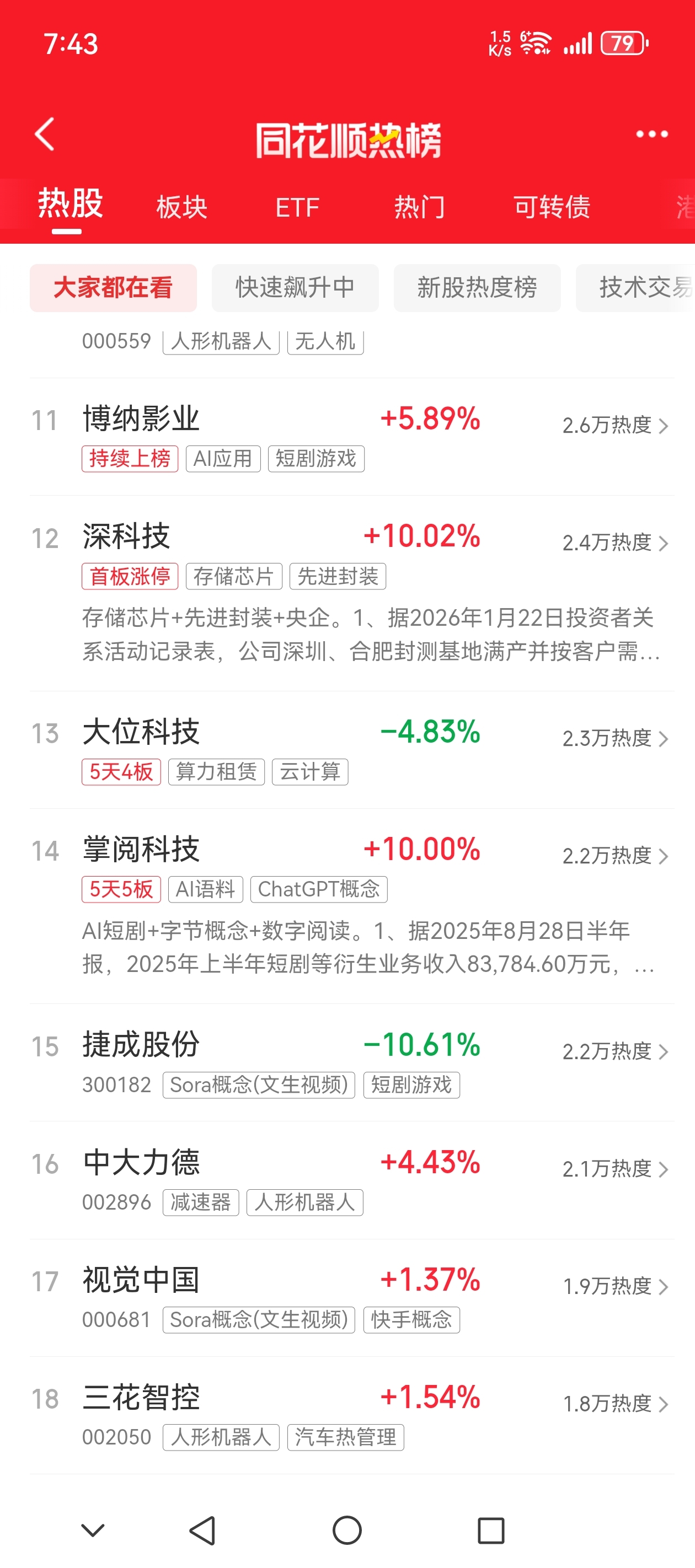 $捷成股份(SZ300182)$ 同花顺排名首次超过这里,兄弟们要加油了,今天干到人气排名第一