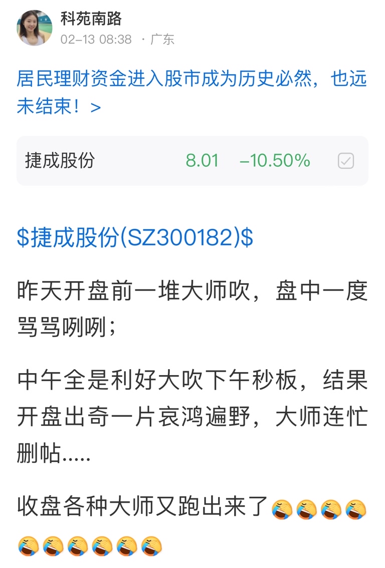 温馨提示: 1.根据《证券法》规定,禁止编造、传播虚假信息或者误导性信息,扰乱证券市场;2.用户在本社区发表的所有资料、言论等仅代表个人观点,与本网站立场无关,不对您构成任何投资建议。用户应基于自己的独立判断,自行决定证券投资并承担相应风险。《东方财富社区管理规定》