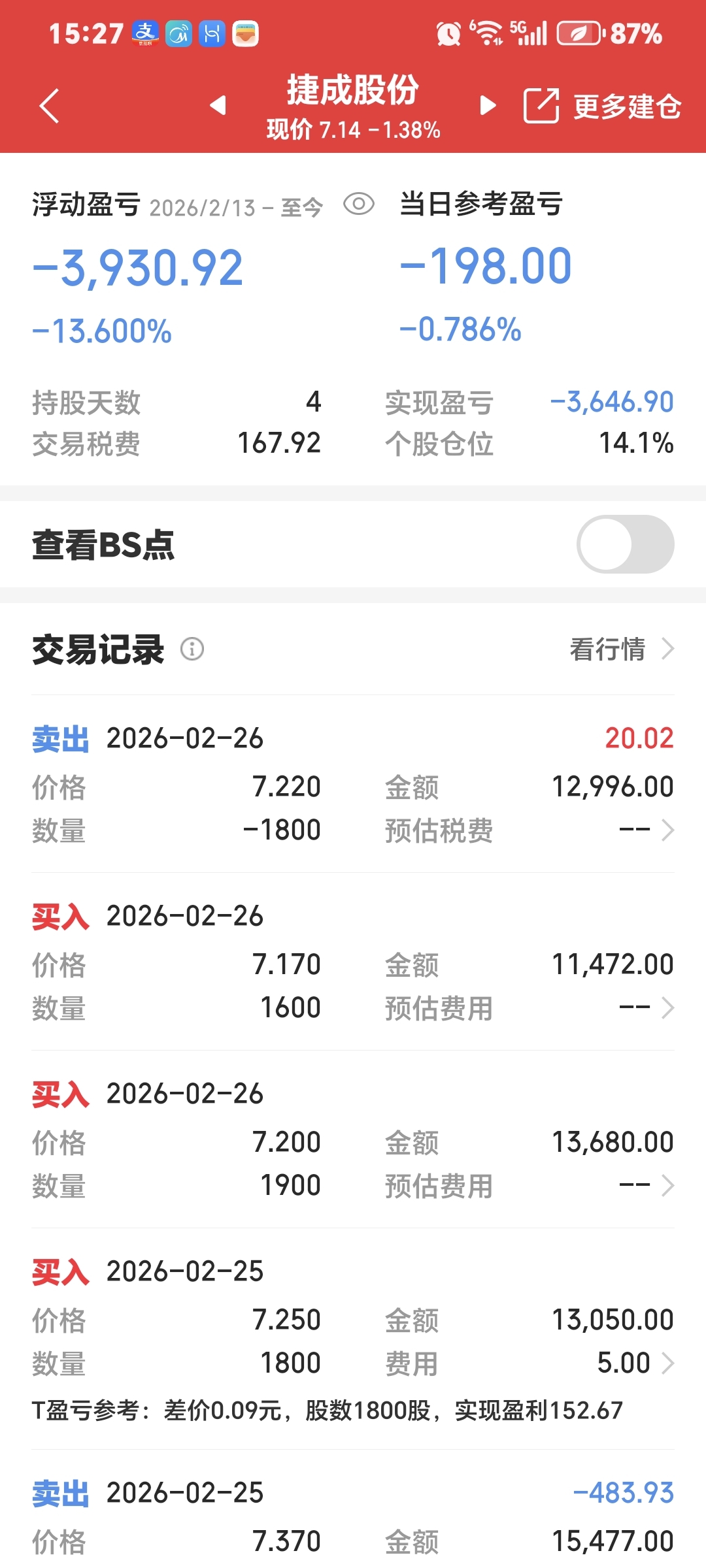 做错了就砍了,整体账户影响不大,无非少赚前两天的钱了,节前最后一天买了4万多,节