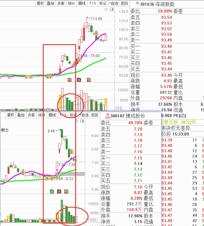 我是拿捷成对标泽润新能(钙钛)的,题材不同,图形、量能几乎一模一样。