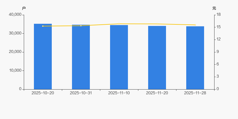 2025年10月20日至今,公司股东户数有所下降,区间跌幅为3.86%。2025年10月20日至2025年11月28日区间股价上涨1.96%。