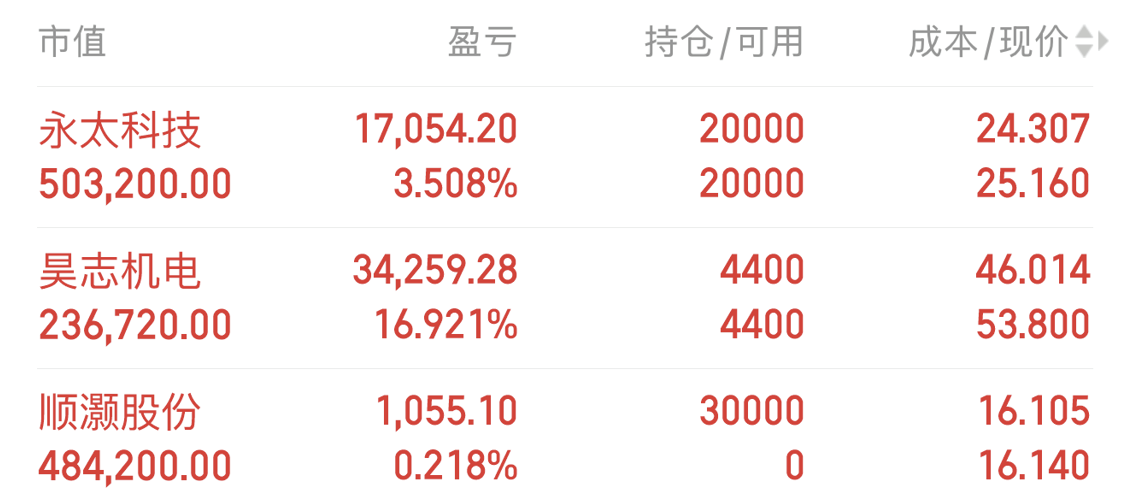 永太科技:昨天算是受到了板块的拖累,题材当中个股的反馈都不是很好。永太在周五涨停之后,昨天是给到了一个不小的负反馈,表现是不符合预期的,不过该股无论是基本面还是在消息的推动上,其是后面仍有一定的预期。并且昨天收盘能够为定在5日线附近,说明还是有一定承接,那么今天5日线就作为一个明确的防守点位,如果说今天不能给到修复,击穿5日线的话,那么策略上,就直接离场。当然了,前面讲了预期这个东西还是要结合着实时盘面来看,还有就是信人不能只信一半,那么飞哥的操作的话都是有始有终,所以老铁们具体操作还是看飞哥盘中的留言区吧。