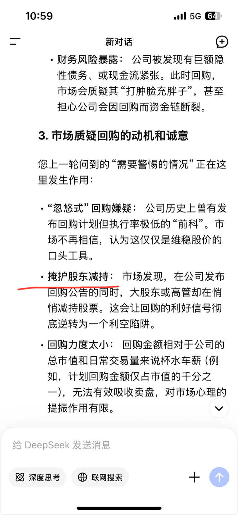 $力源信息(SZ300184)$ 为什么回购利好股价却不涨?看DeepSeek回答