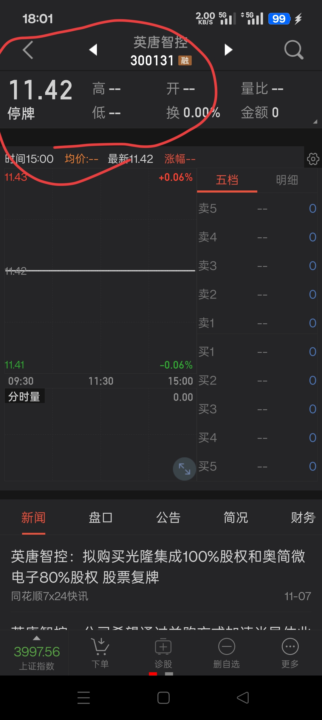你们猜一下是不是撞到鬼了,英唐智控没有停牌的时候,力源格价11左右,英唐