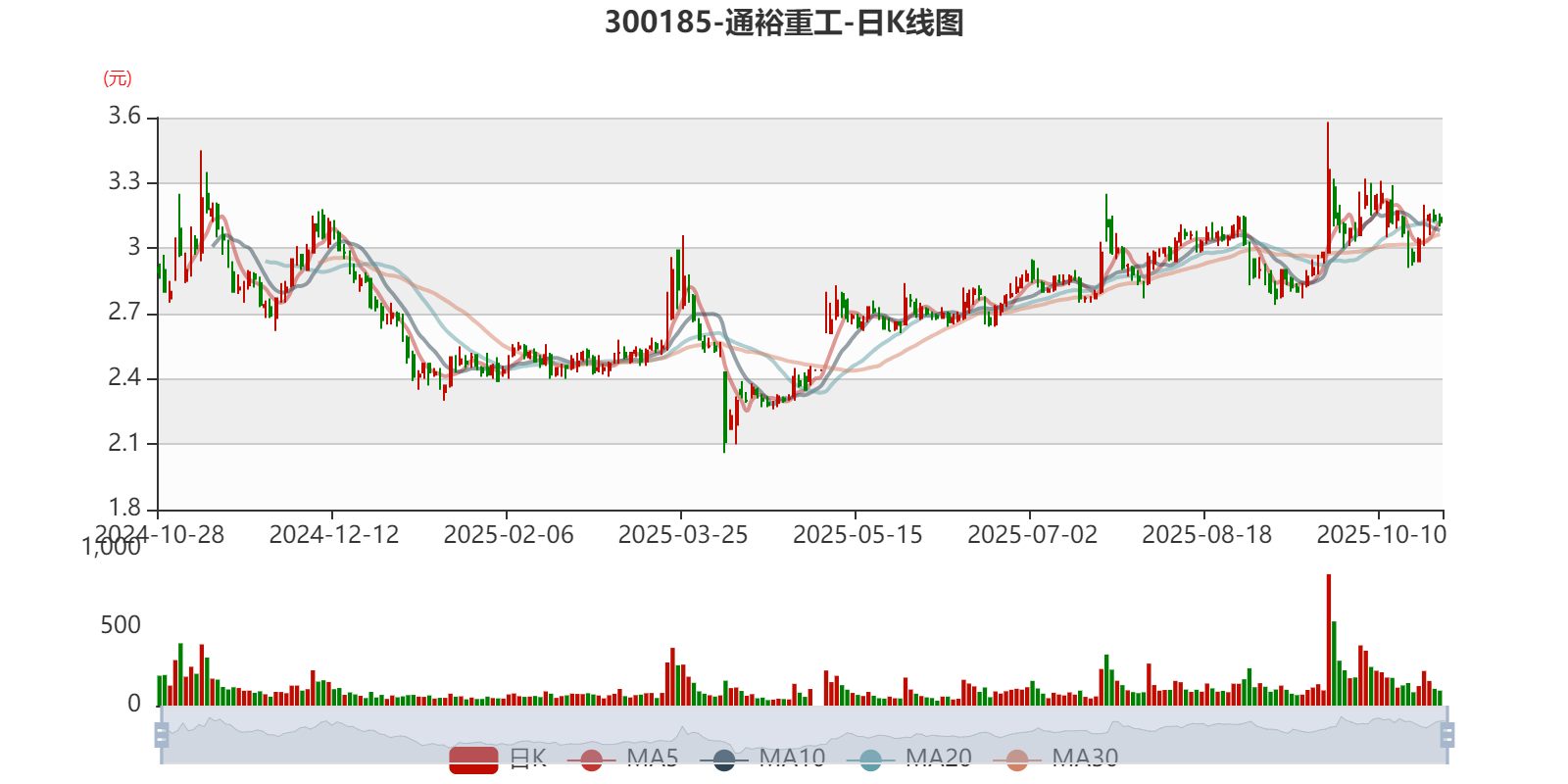 中证智能财讯通裕重工(300185)10月28日披露2025年第三季度报告。前三季度公司实现营业总收入47.32亿元,同比增长10.67%;归母净利润8382.5万元,同比增长53.29%;扣非净利润7960.54万元,同比增长81.77%;经营活动产生的现金流量净额为1.45亿元,同比增长13.47%;报告期内,通裕重工基本每股收益为0.0217元,加权平均净资产收益率为1.22%。