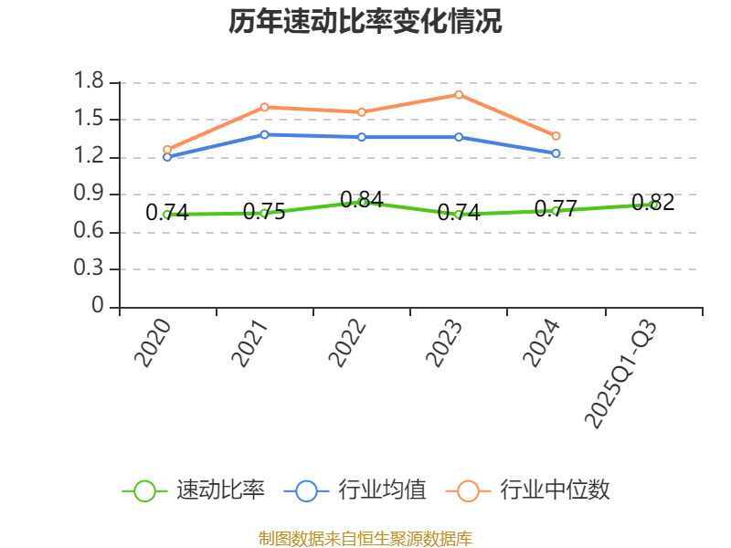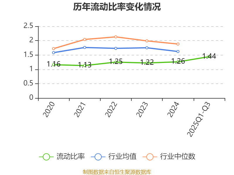 2025年前三季度,公司流动比率为1.44,速动比率为0.82。