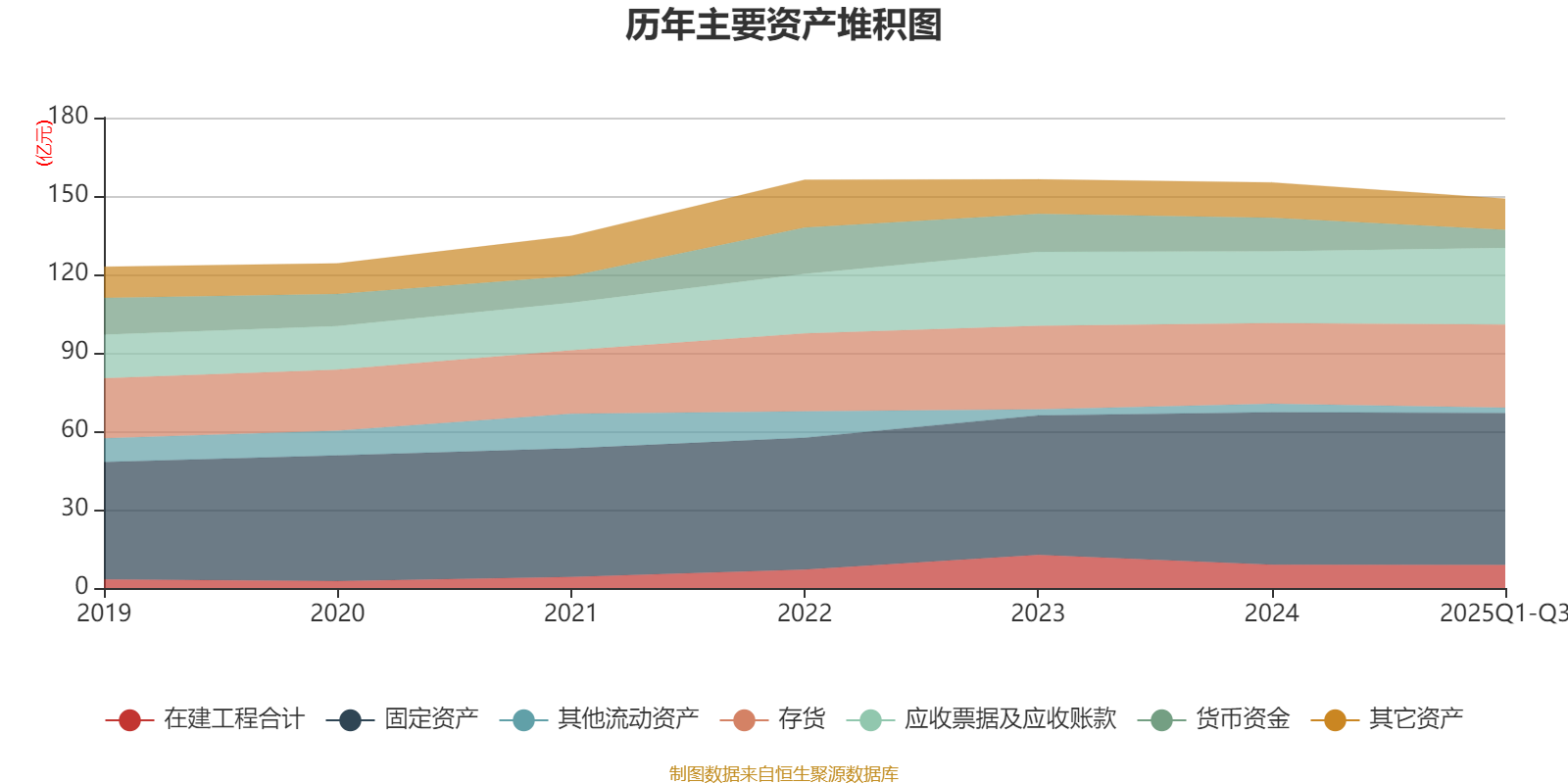 资产重大变化方面,截至2025年三季度末,公司货币资金较上年末减少46.64%,占公司总资产比重下降3.68个百分点;应收票据及应收账款较上年末增加6.83%,占公司总资产比重上升2个百分点;存货较上年末增加3.08%,占公司总资产比重上升1.47个百分点;固定资产较上年末减少0.41%,占公司总资产比重上升1.42个百分点。