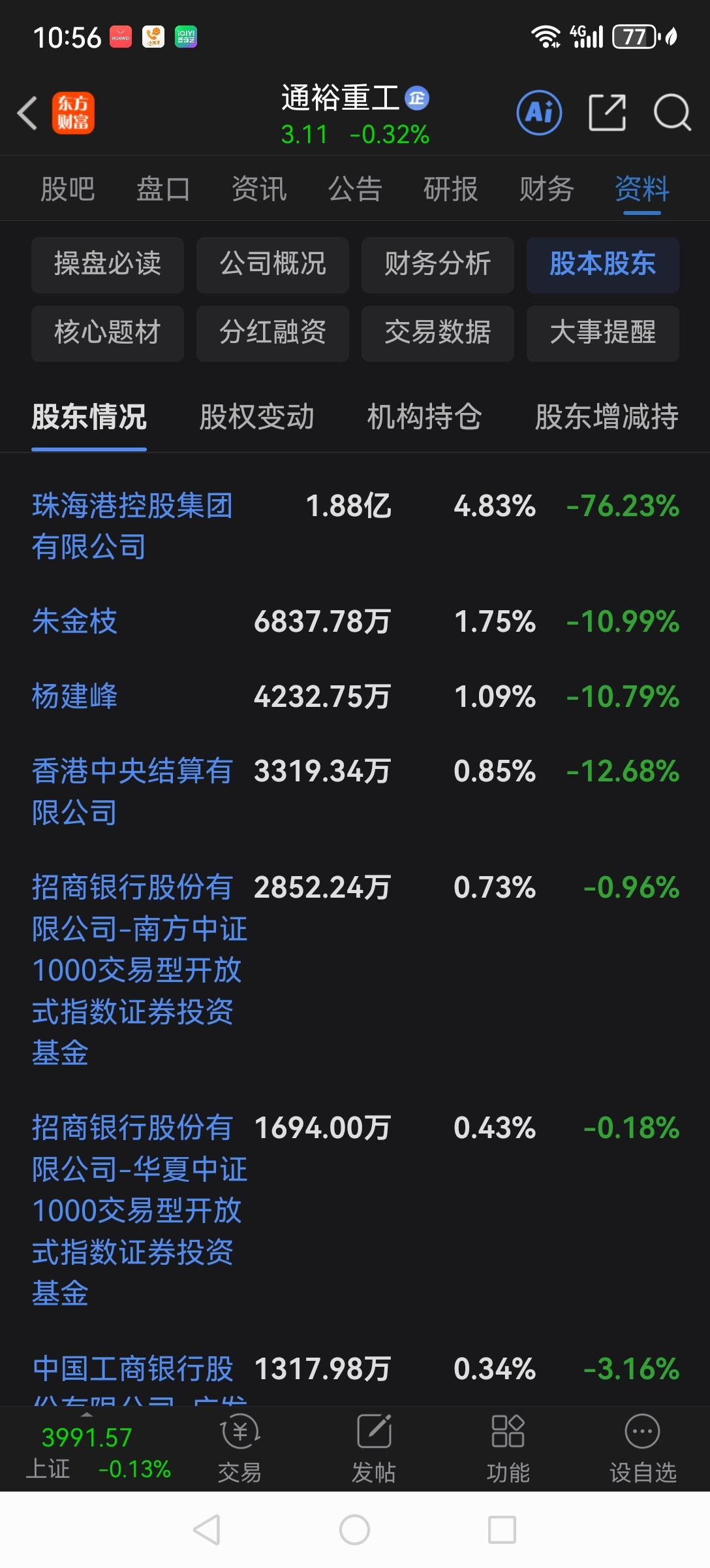 $通裕重工(SZ300185)$ 这价位,大股东们清一色的减持,没什么值得期待和坚持的! 业绩差杀跌,业绩好滞涨,存在已经毫无意义!