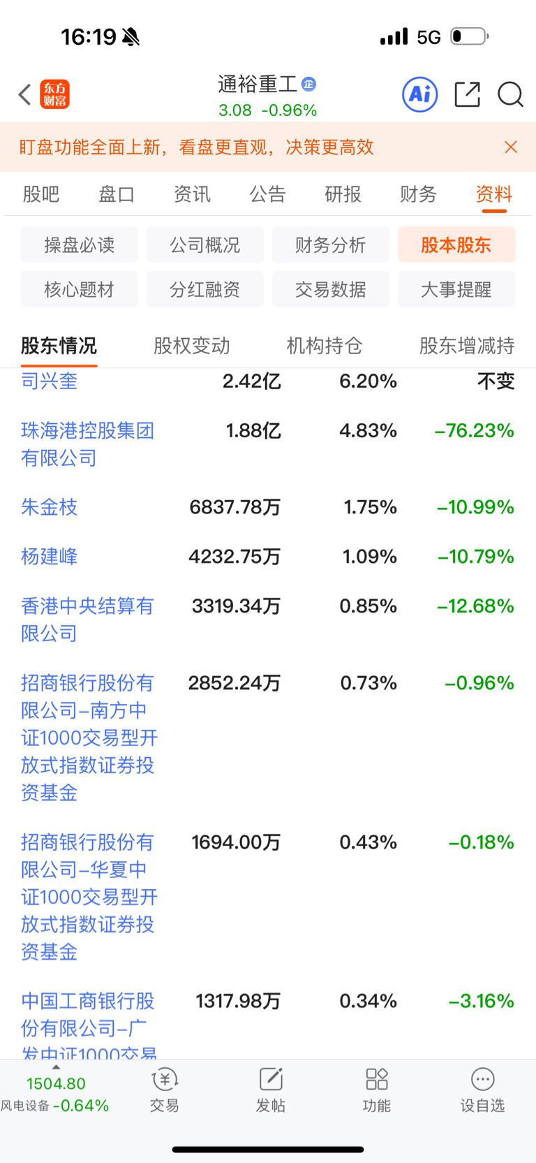 $通裕重工(SZ300185)$ 第三季逃全在出逃,散户接了不少