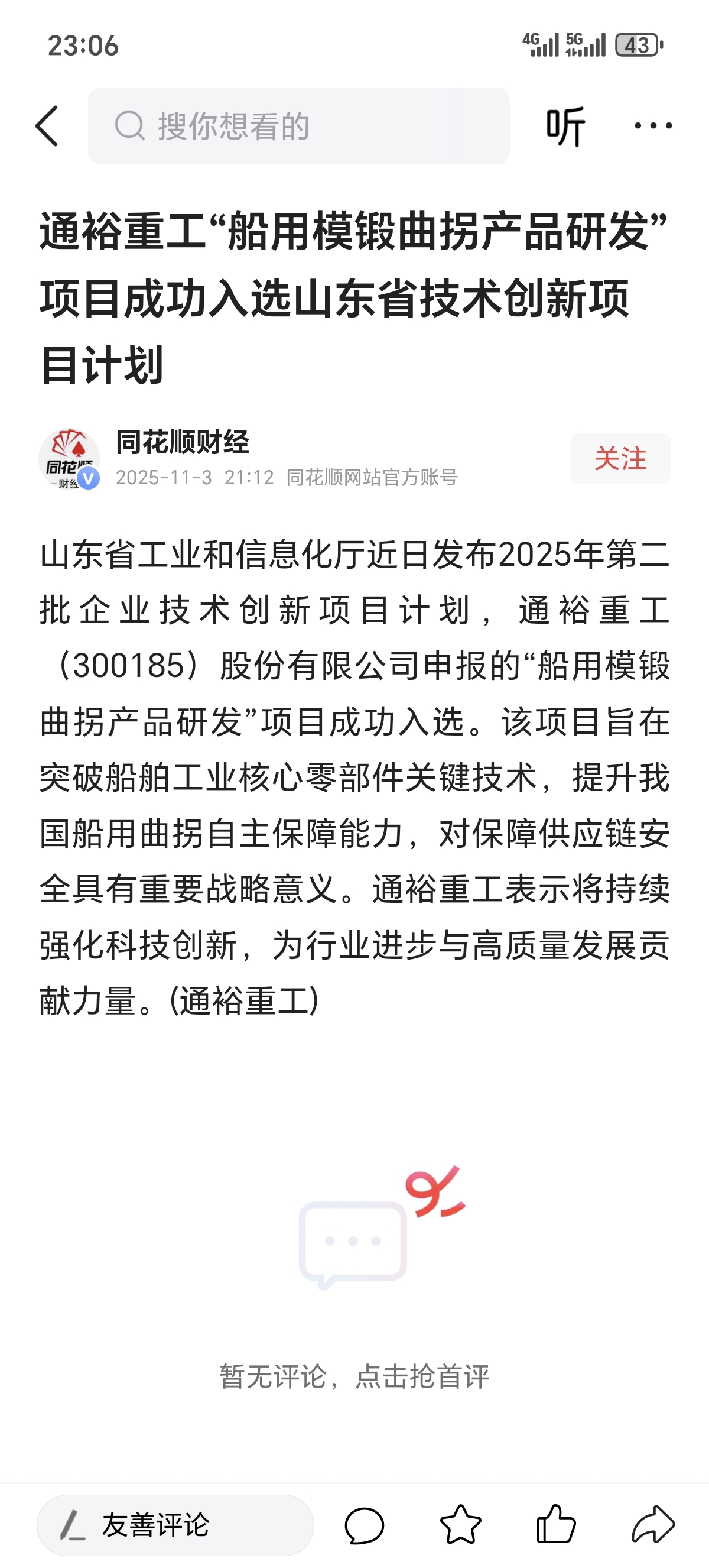 $通裕重工(SZ300185)$ 关键是战略意义,就是不知道对股价有没有催化作用!