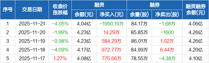 通裕重工:融资净偿还1950.19万元,融资余额4.04亿元(11-21)