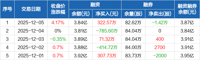通裕重工:融资净买入322.57万元,融资余额3.84亿元(12-05)