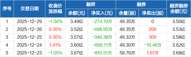 通裕重工:连续5日融资净偿还累计2602.13万元(12-29)