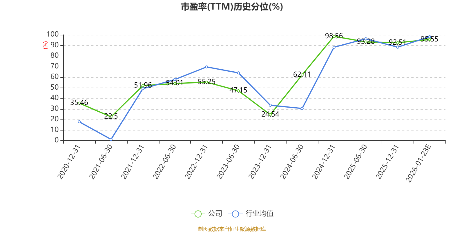 以本次披露业绩预告均值计算,公司近年市盈率(TTM)图如下所示:
