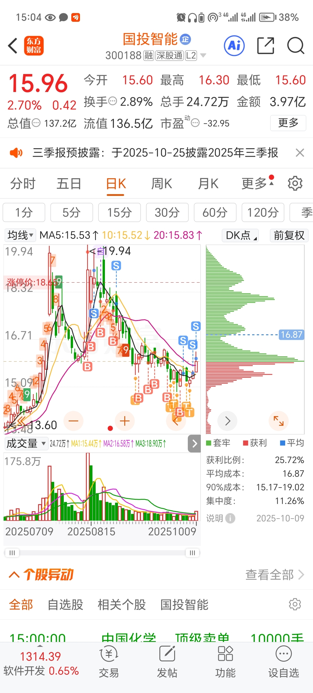 $国投智能(SZ300188)$ 套我这么久,回本马上走,你可以涨停了