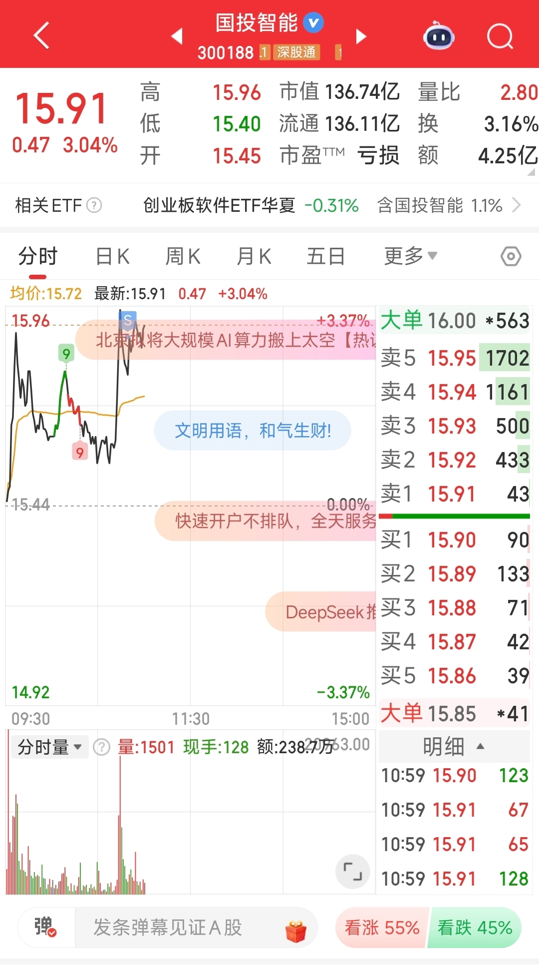 $国投智能(SZ300188)$ 下来吧,别让爱你的人伤心
