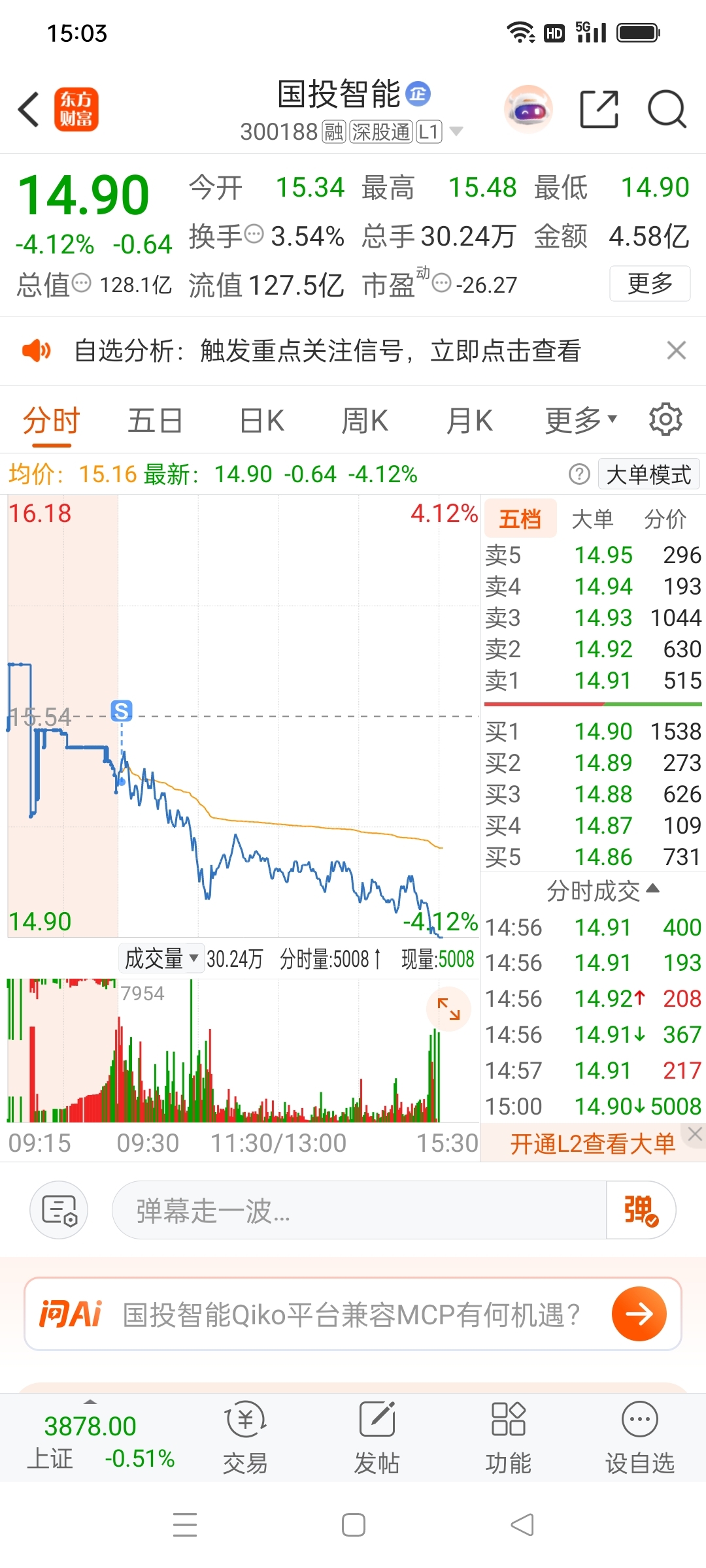 $国投智能(SZ300188)$ 判断不错,早上清仓处理就是对的