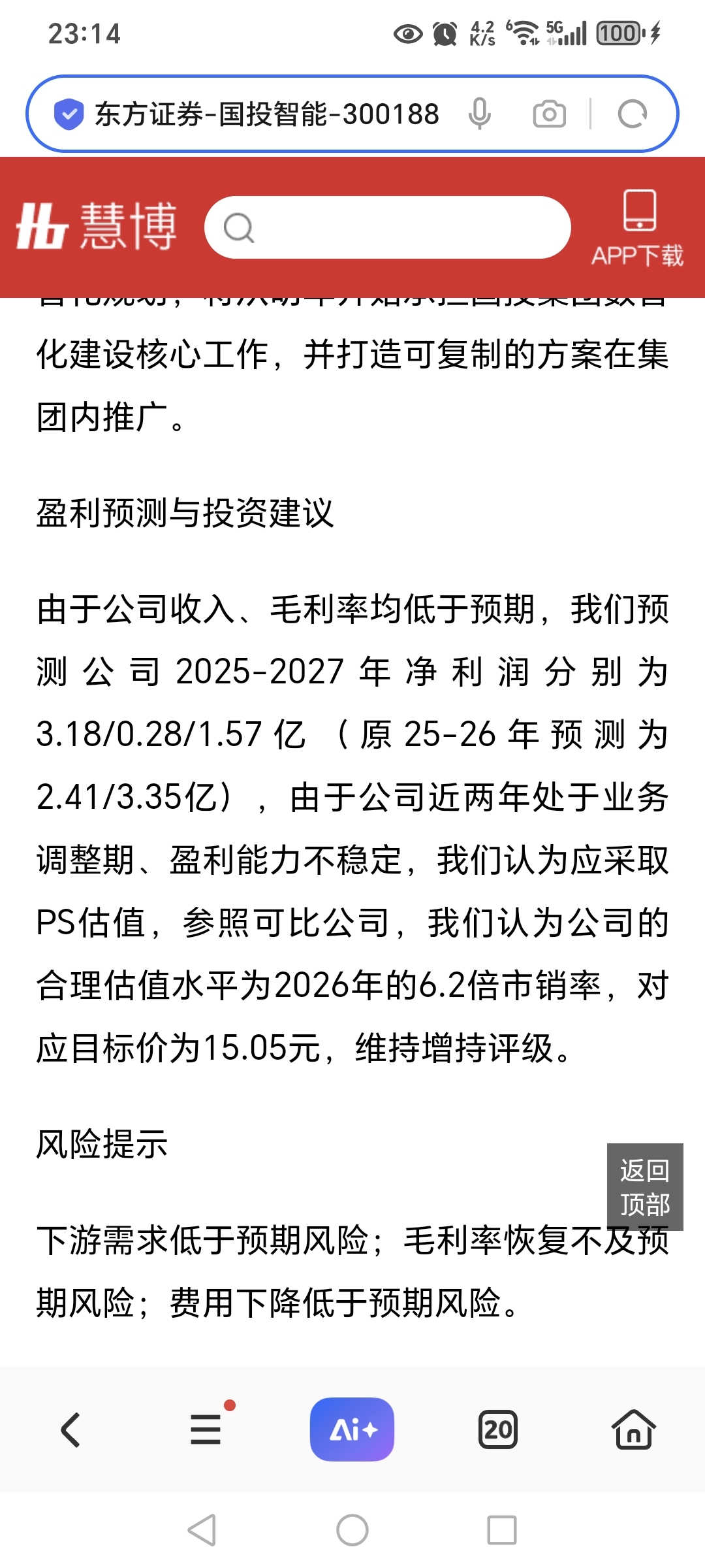 由于公司近两年处于业务调整期、盈利能力不稳定,我们认为应采取PS估值,参照可比公司,我们认为公司的合理估值水平为2026年的6.2倍市销率,对应目标价为15.05元,维持增持评级。
