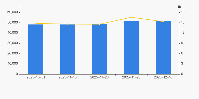 自2025年11月10日以来,公司股东户数连续3期上涨,截至目前增幅为6.85%。2025年11月10日至2025年12月10日区间股价上涨5.00%。
