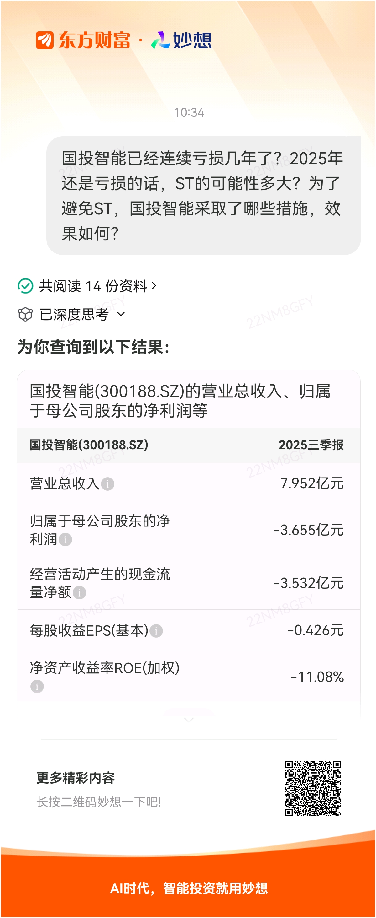 #@妙想,你怎么看?# 妙想一下:国投智能已经连续亏损几年了?2025年还是亏损的话,ST的可能性多大?为了避免ST,国投智能采取了哪些措施,效果如何?