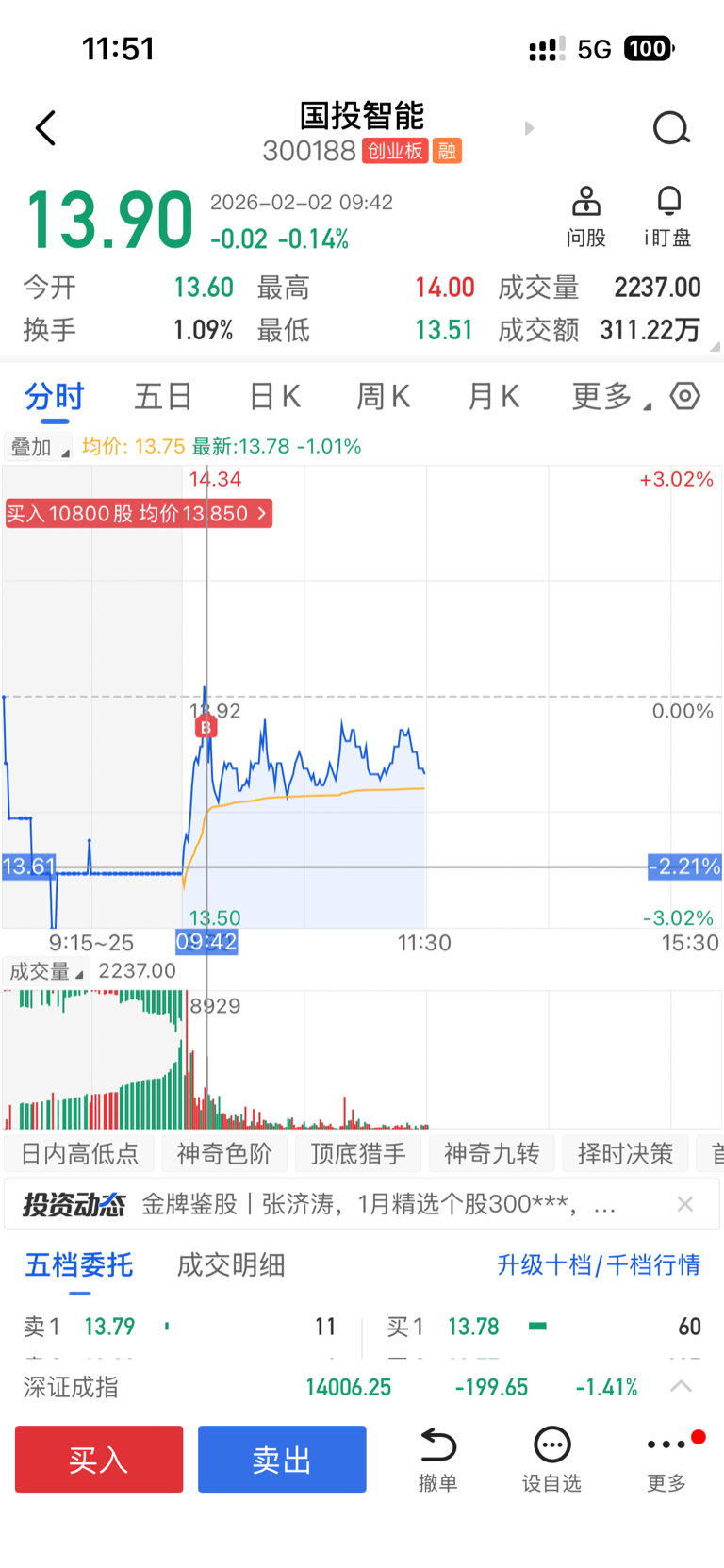 $国投智能(SZ300188)$