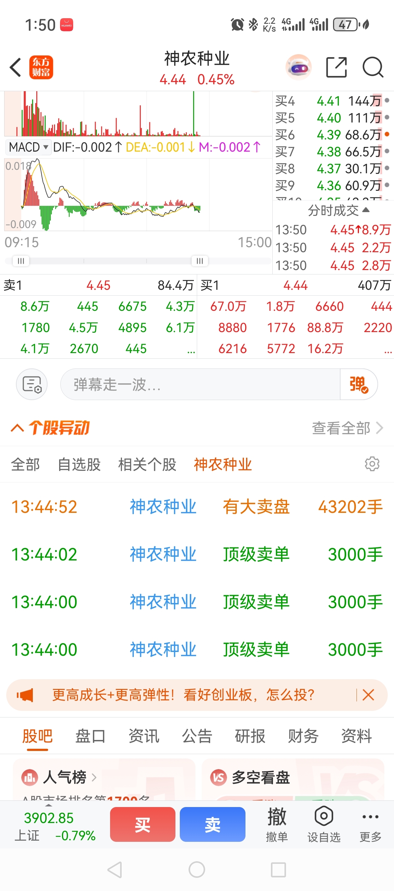 $神农种业(SZ300189)$ 都在卖出,还不跑啊