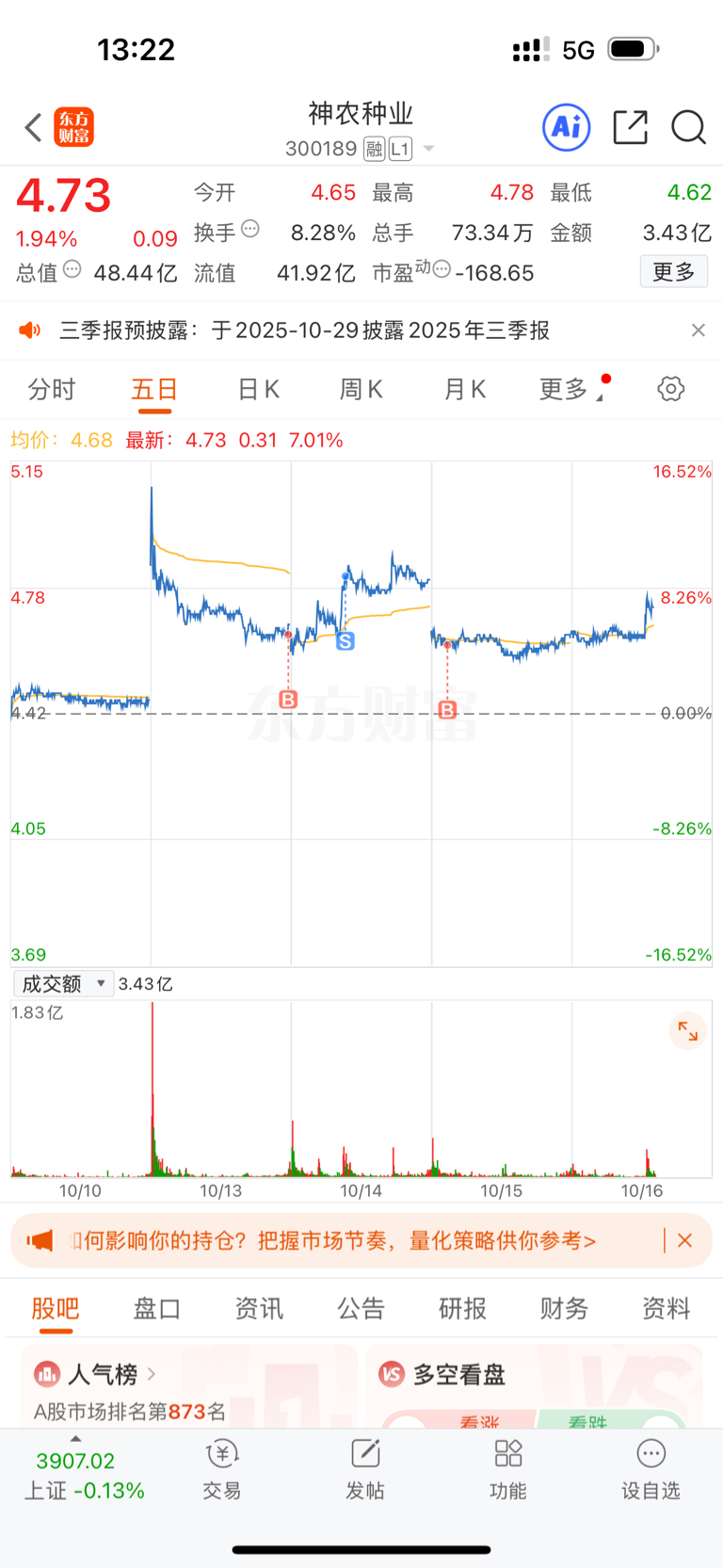 $神农种业(SZ300189)$ 波动太小了,选错了,还是美晨拉的爽