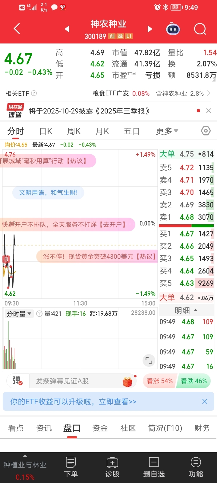 $神农种业(SZ300189)$ 买入等拉升