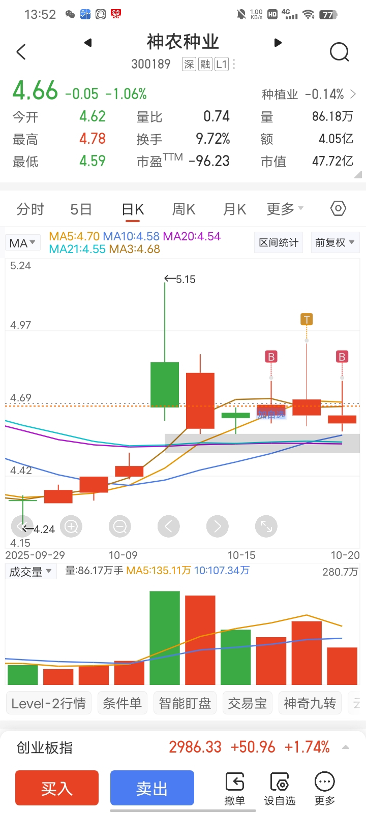 $神农种业(SZ300189)$ 今天仓位上刺刀