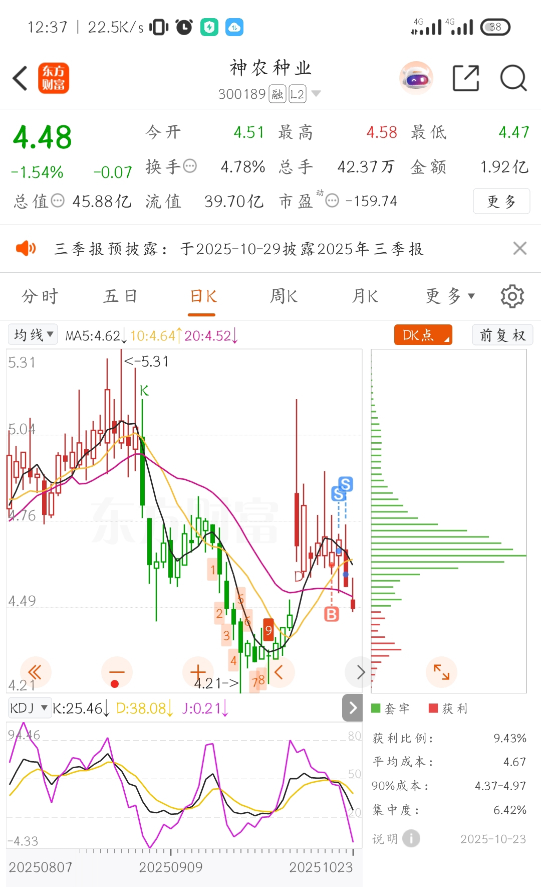 $神农种业(SZ300189)$ 还好保本跑了,不然又套上了