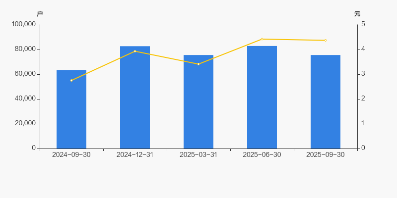 截至2025年9月30日,公司最新总股本为10.24亿股,其中流通股本为8.86亿股。户均持有流通股数量由上期的1.07万股上升至1.17万股,户均流通市值5.13万元。