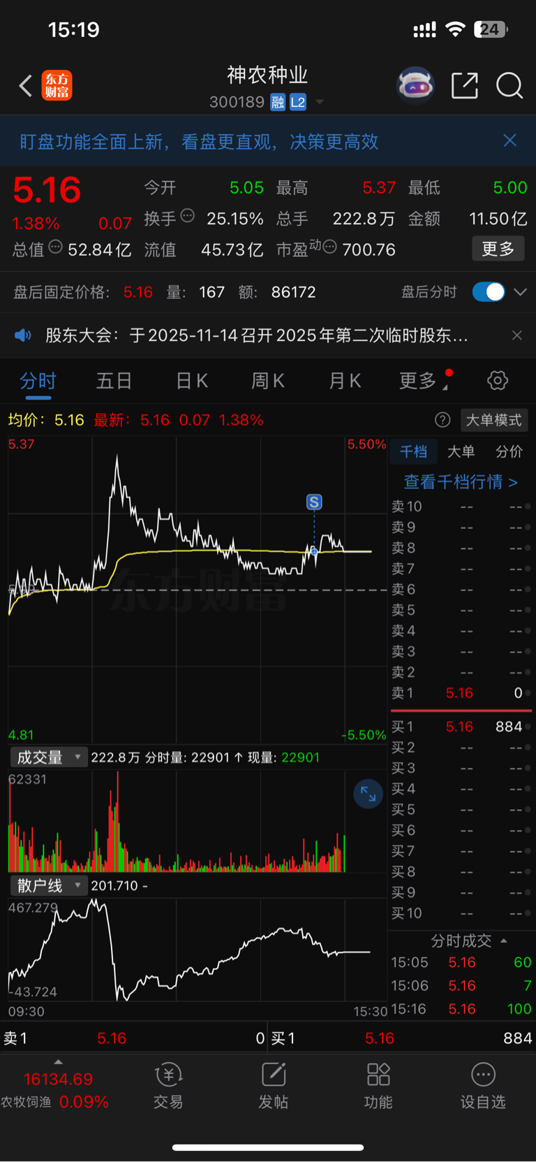 $神农种业(SZ300189)$ 先跑了,我是怕了他了