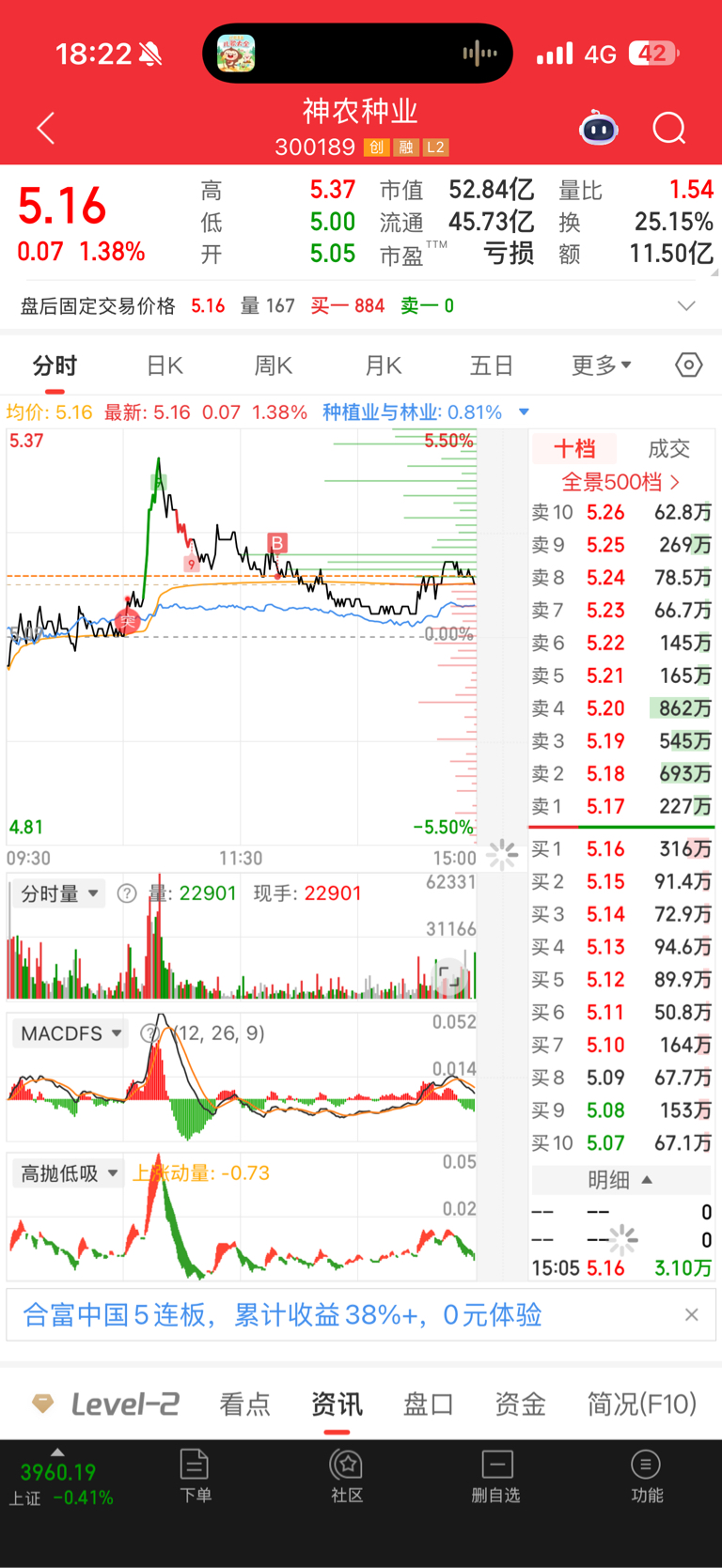 $神农种业(SZ300189)$ 这个价格买入,明天不知道会不会亏死呢。之前经常想买这个票,今天鼓起勇气买了10w,希望明天有回报吧